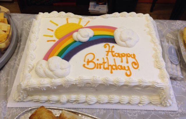 A lovely buffet was laid out for everyone to enjoy. In the middle of the table was a cake with sunshine and a rainbow on. It even had sparklers!